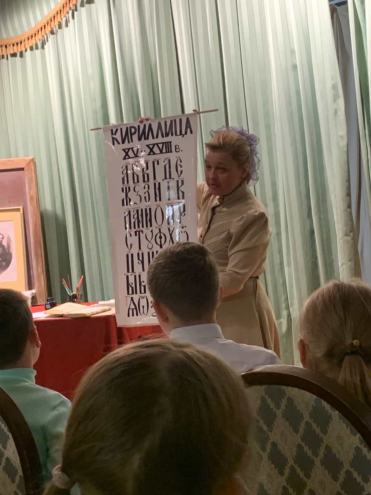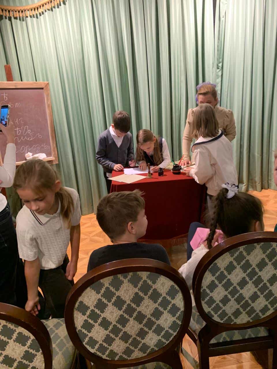В музее ребята ознакомились рукописями , увидели портреты, фотографии писателя и его окружения. Ребята познакомились с Кириллицей, участвовали с постановке спектакля, писали пером. А так же узнали какой был порядок обучения в школе ЛН Толстого.