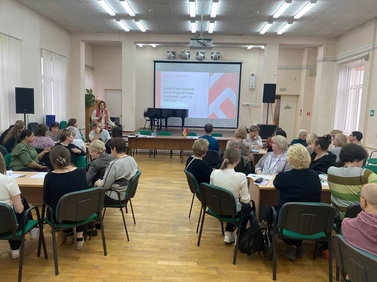 В рамках методической просветительской работы преподаватели Учебного центра Корпоративного университета московского образования, Грошева Анастасия Владимировна, к.п.н., и Иванцова Елена Сергеевна, к.п.н., доцент, провели увлекательный обучающий тренинг «Конструирование метапредметных заданий: шаг за шагом» для учителей нашей школы.