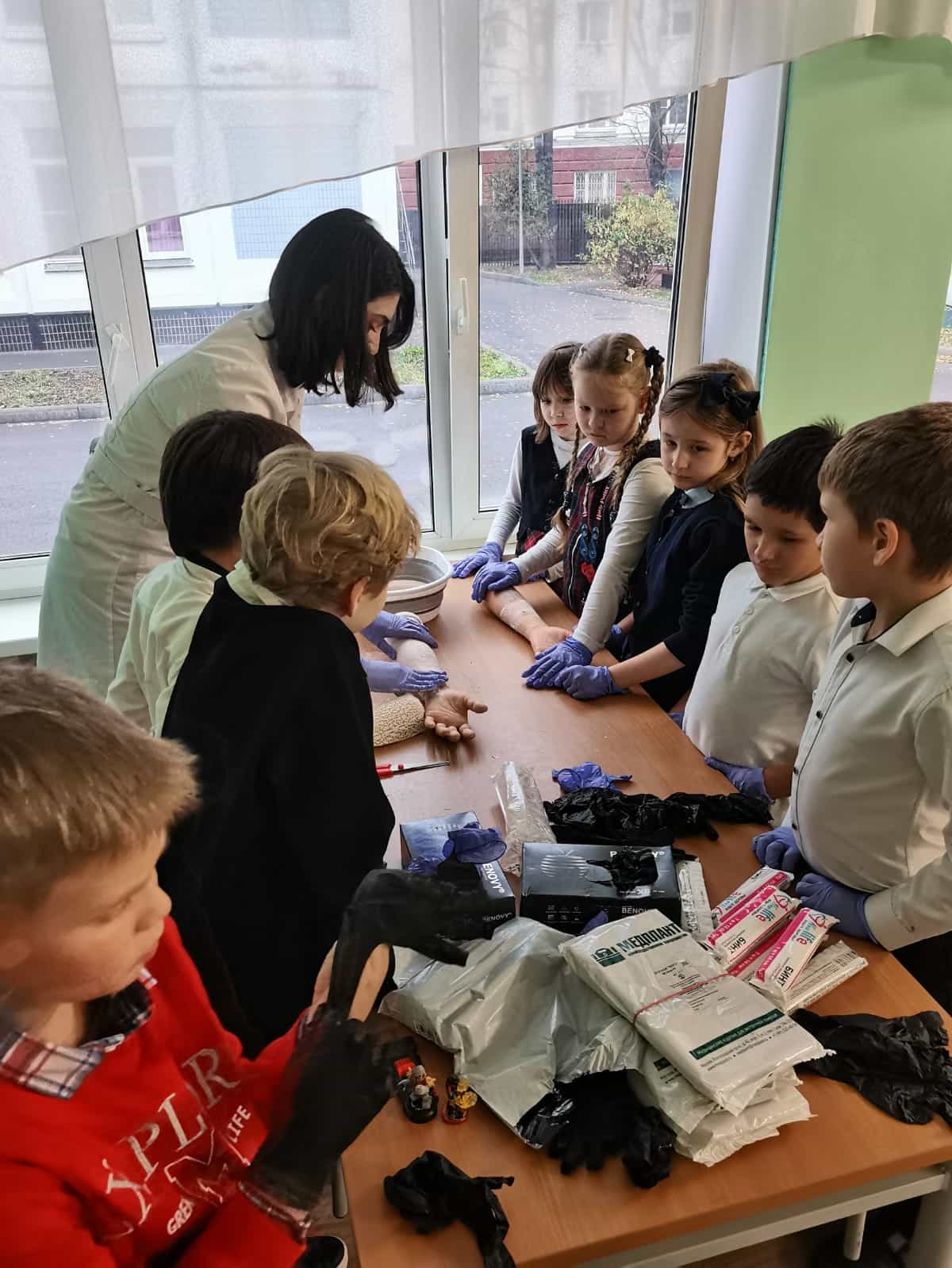 Дети узнали о строении тела человека и внутренних органов, что стало настоящим открытием для многих. На практике они научились накладывать гипс на руку и ногу, что вызвало настоящий восторг!