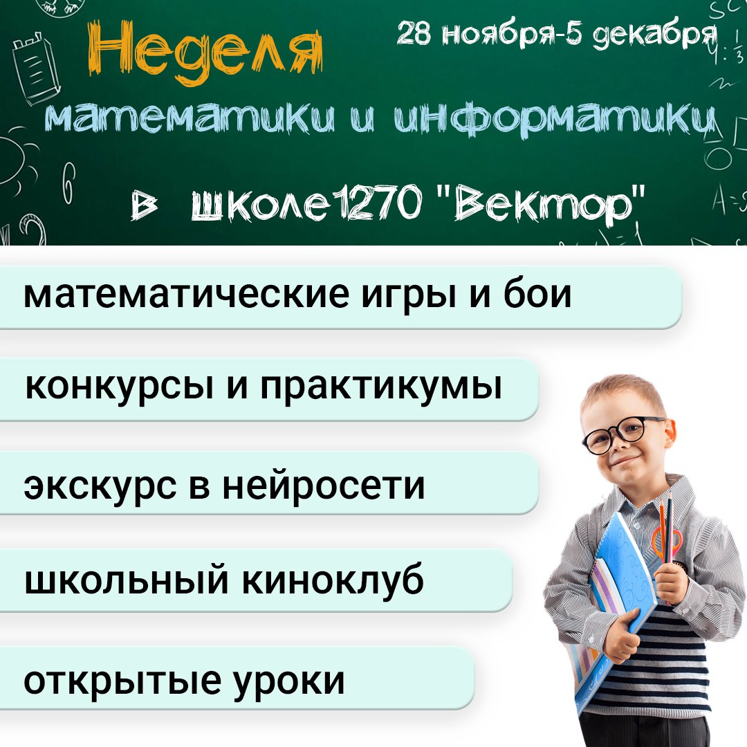 Уже в эту пятницу! Приглашаем вас принять участие в захватывающих мероприятиях, которые будут проходить в нашей школе в рамках Недели математики и информатики, приуроченной ко Дню математика, который в России отмечается уже второй год - 1 декабря!